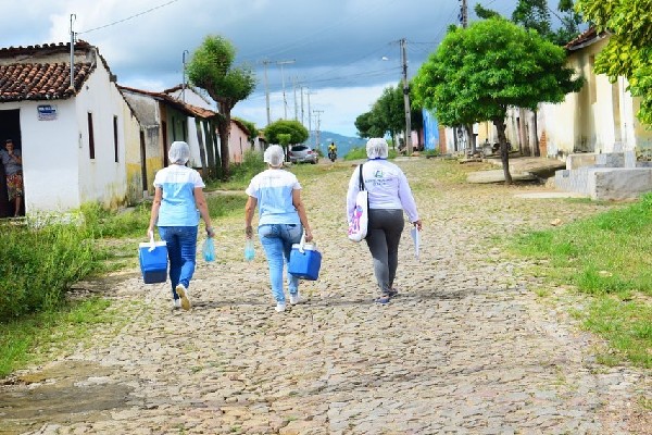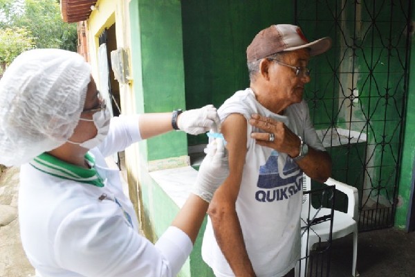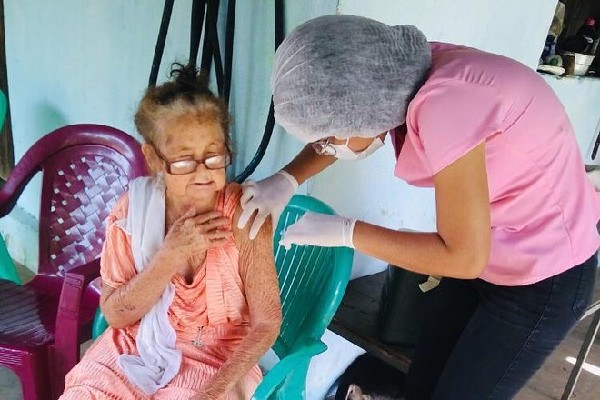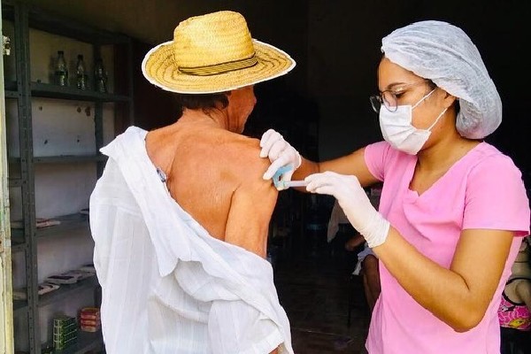 Às equipes de profissionais de saúde estão levando a vacina, o idoso é vacinado na calçada (exceto os acamados), neste caso o profissional entra na casa e aplica a dose.